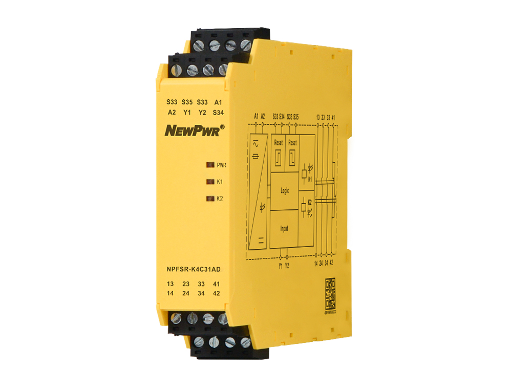 K series safety mat input safety relay is applicable to 2-wire NO contact safety mat input. When a certain weight is applied to the safety mat, the NO contact of the safety mat is closed, and the safety output contact of the control safety relay is open, so as to protect the operators in the dangerous area. Main features: 1oo2 architecture;With detection of input breakage;With auto reset and manual reset or monitored manual reset function;The safety function remains effective in the case of a component failure;The correct opening and closing of the safety function relays is tested automatically in each on-off cycle.