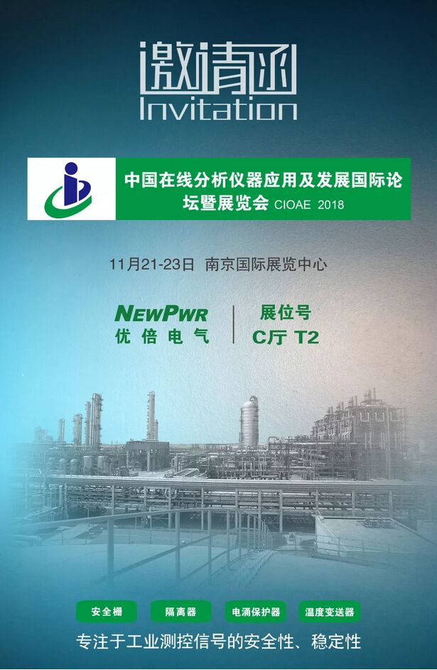 11月21-23日,優(yōu)倍電氣將在本屆展會特裝展出。優(yōu)倍電氣是國內工業(yè)防爆儀表領域技術及市場的重要供應商之一,其新C系列隔離式安全柵、隔離器、全新系列電涌保護器在線監(jiān)測、檢測和分析系統(tǒng)中提供信號防爆、防雷、抗干擾安全等解決方案,用高可靠性與穩(wěn)定性產品助力CEMS行業(yè)。優(yōu)倍在線分析行業(yè)優(yōu)質客戶:雪迪龍、西克麥哈克、聚光科技等行業(yè)巨頭齊聚金陵,盛況空前。